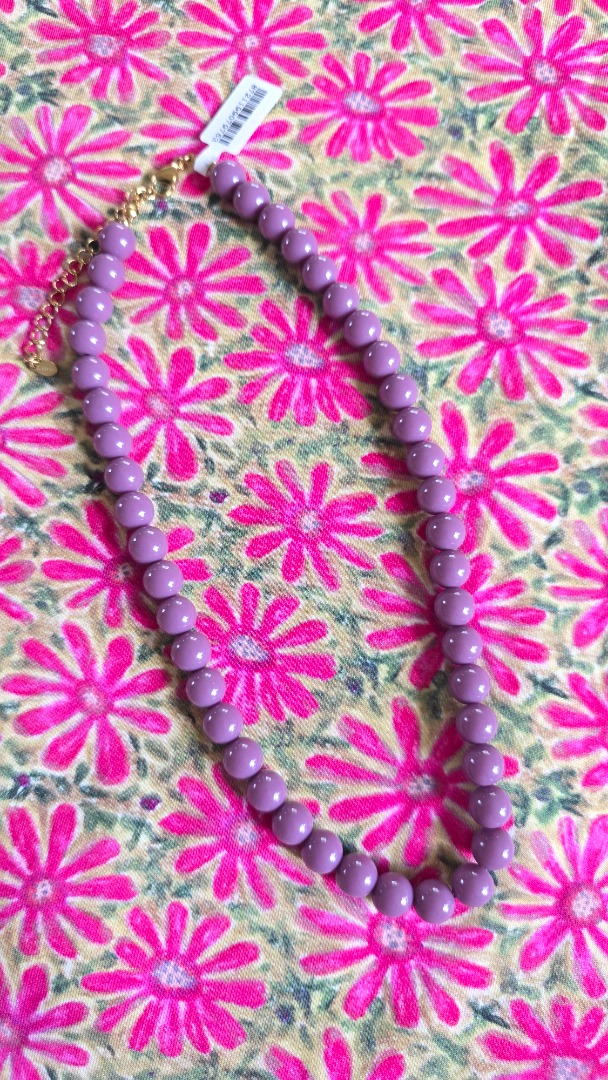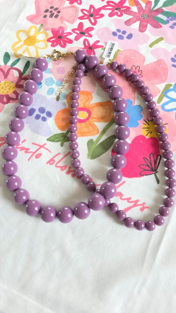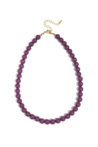 De kralenketting in deze mooie paarse tint trekt direct de aandacht. Perfect om aan een casual outfit als een feestelijke look een vleugje kleur te geven.