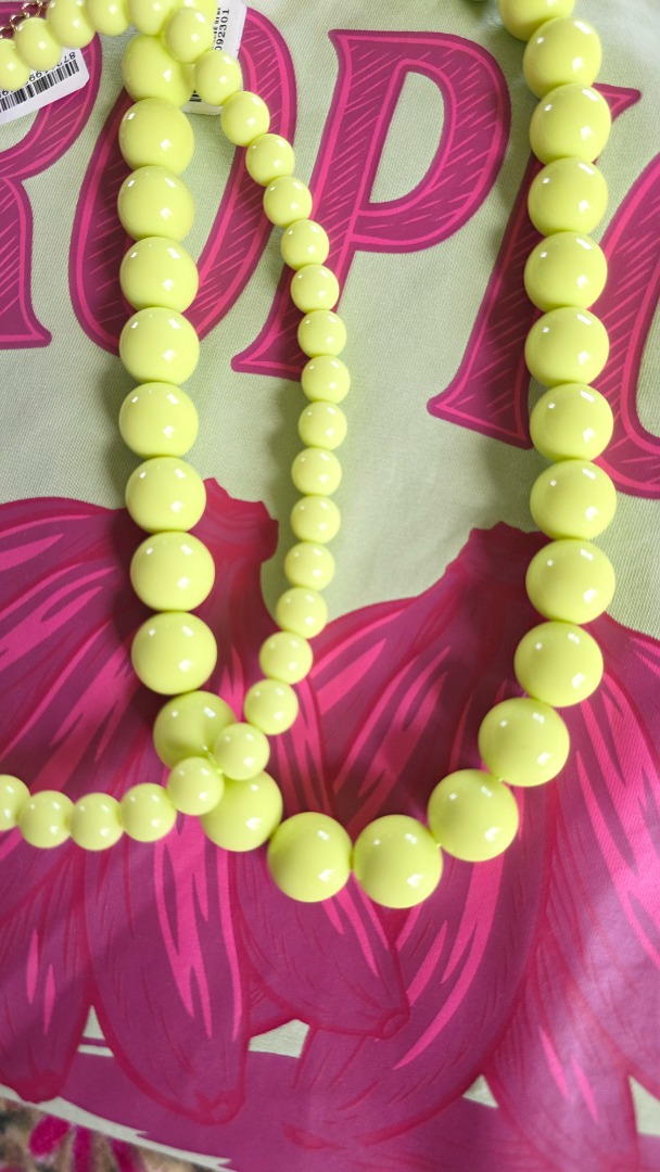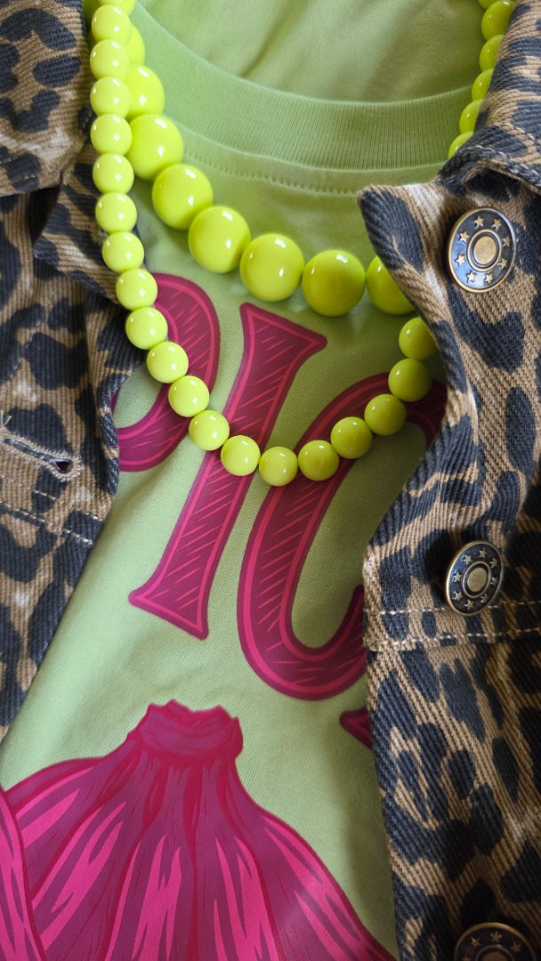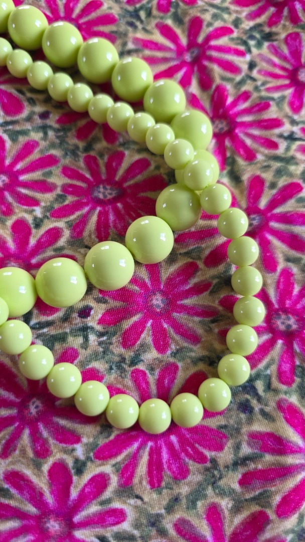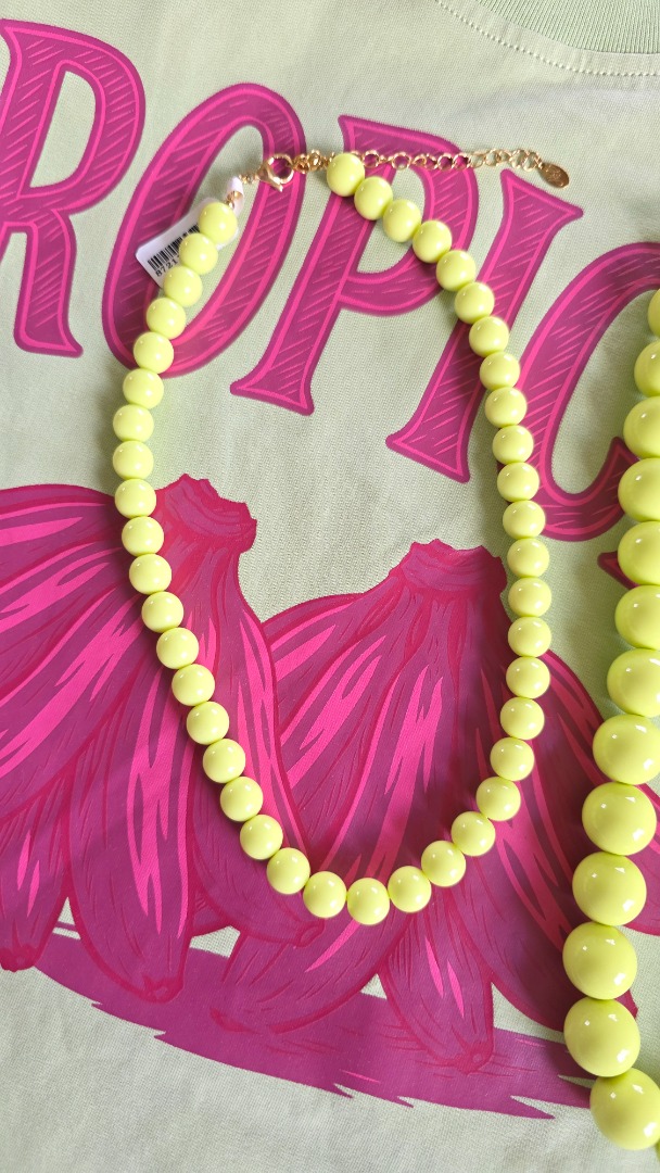 De kralenketting in deze mooie lime groene tint trekt direct de aandacht. Perfect om aan een casual outfit als een feestelijke look een vleugje kleur te geven.