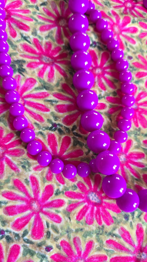 De kralenketting in deze mooie violet tint trekt direct de aandacht. Perfect om aan een casual outfit als een feestelijke look een vleugje kleur te geven.