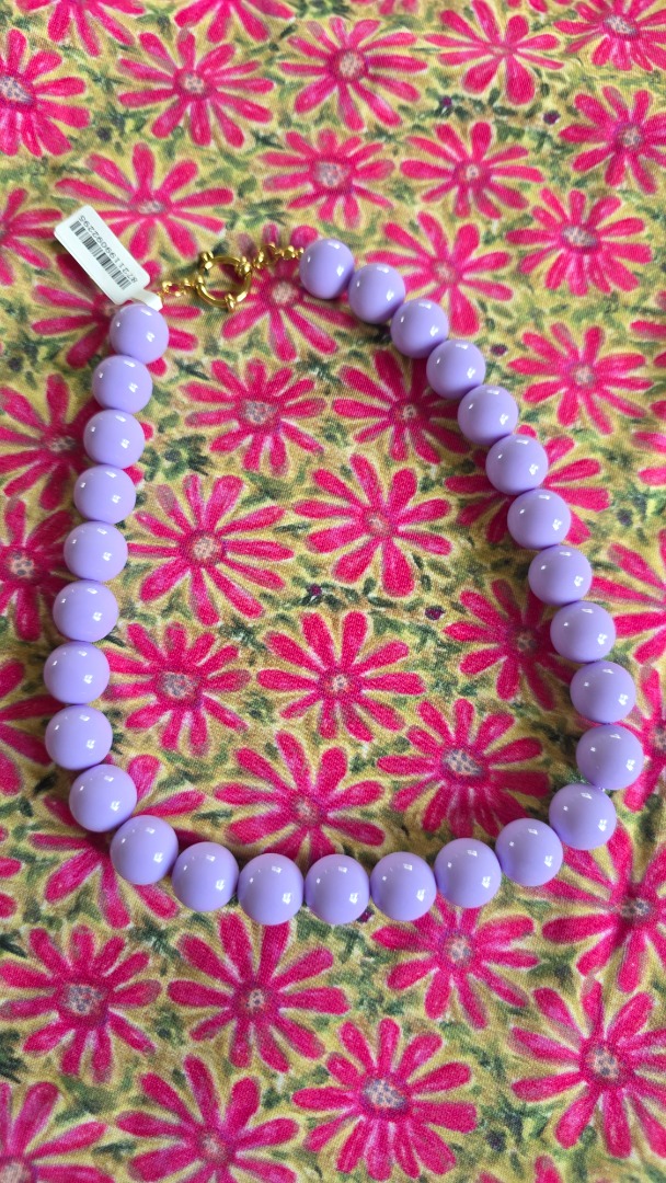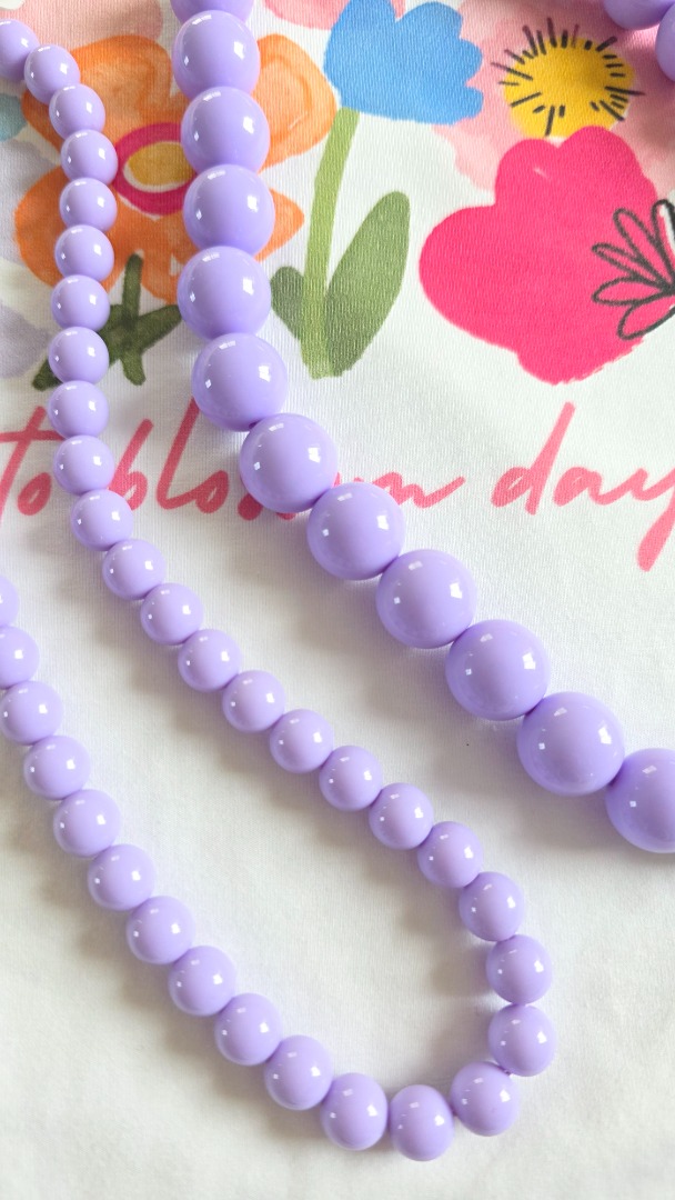 De kralen ketting in deze mooie lila tint trekt direct de aandacht. Perfect om aan een casual outfit als een feestelijke look een vleugje kleur te geven.