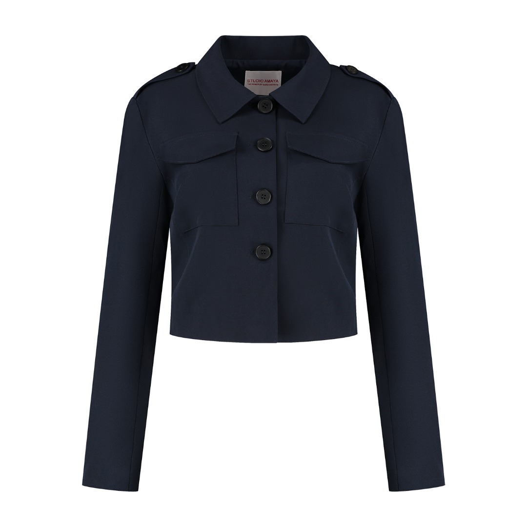 Het Snow Jacket is een getailleerd model en valt wat korter. Het Jacket heeft twee borstzakken en een knoopsluiting aan de voorkant. In de schouders zit een beetje schoudervulling, hierdoor heeft het Snow Jacket een stoere look.