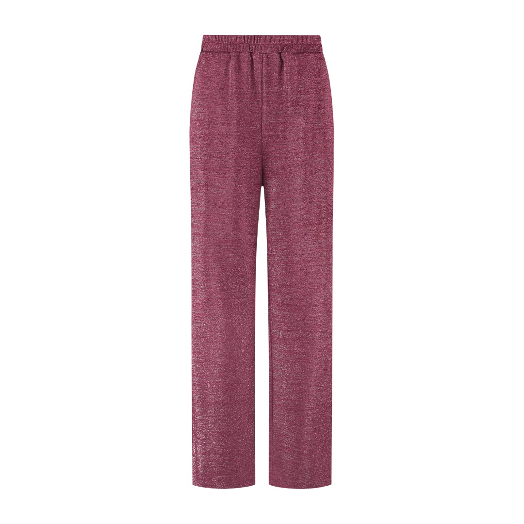 De Mira Pants Red is een soepelvallende broek met een wijd uitlopende pijp en metallic glans. Dankzij de elastische tailleband en het lichte materiaal zijn ze perfect voor feestelijke gelegenheden.