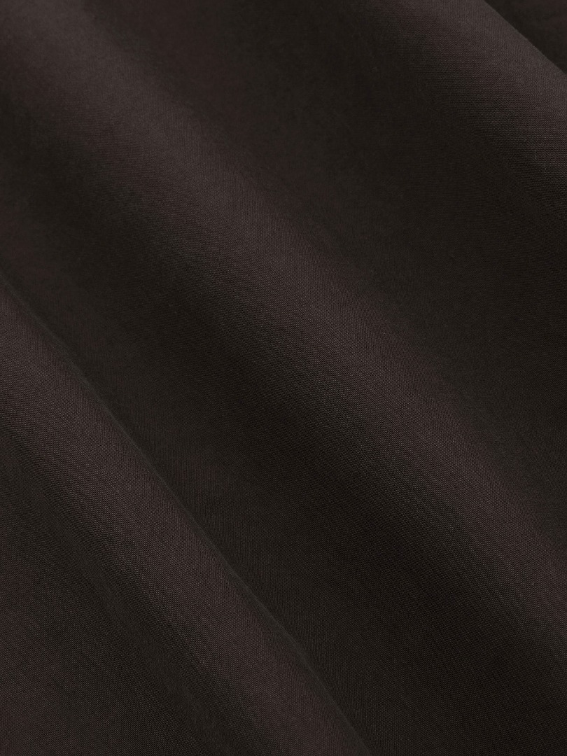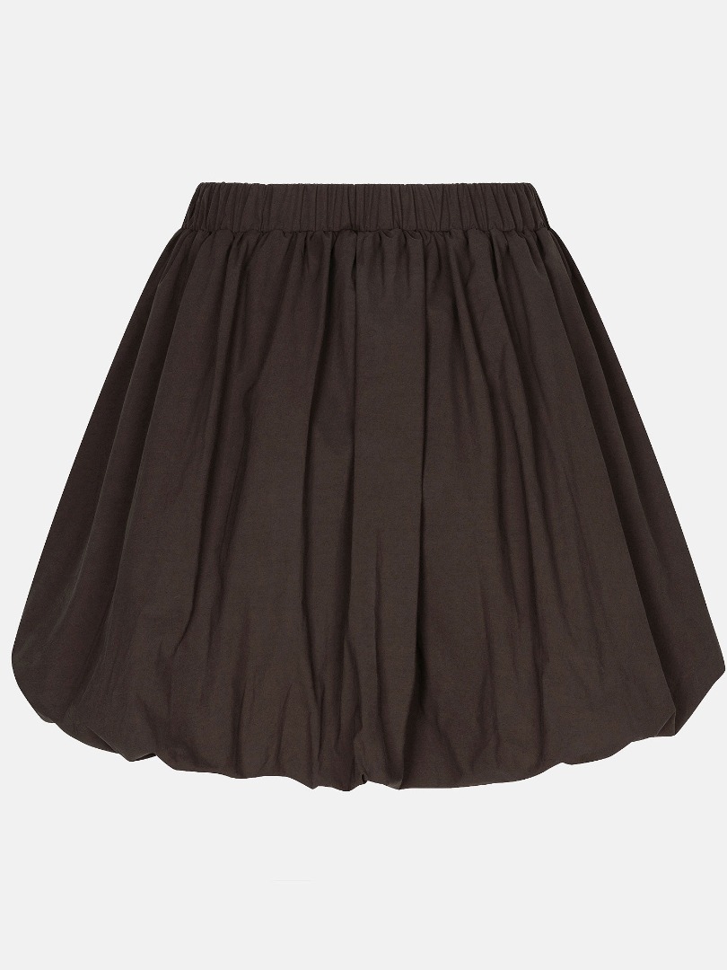 De rok kenmerkt zich door een "puffy" onderkant die naar binnen is gewerkt, wat zorgt voor een uniek en volumineus ballon-effect. Uitgevoerd in een diepe Dark Brown kleur, wat de rok eenvoudig te combineren maakt met warme tinten of basics.